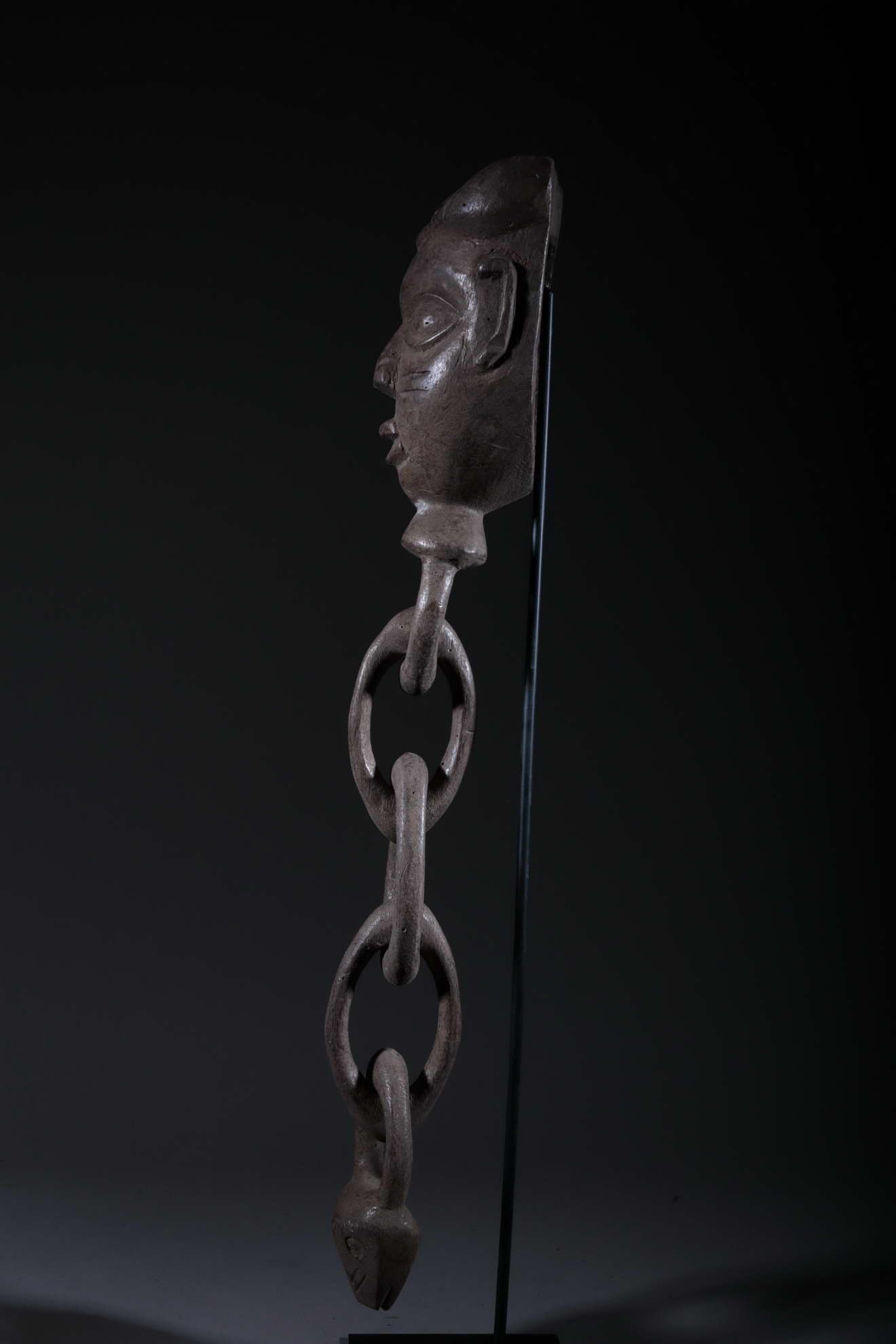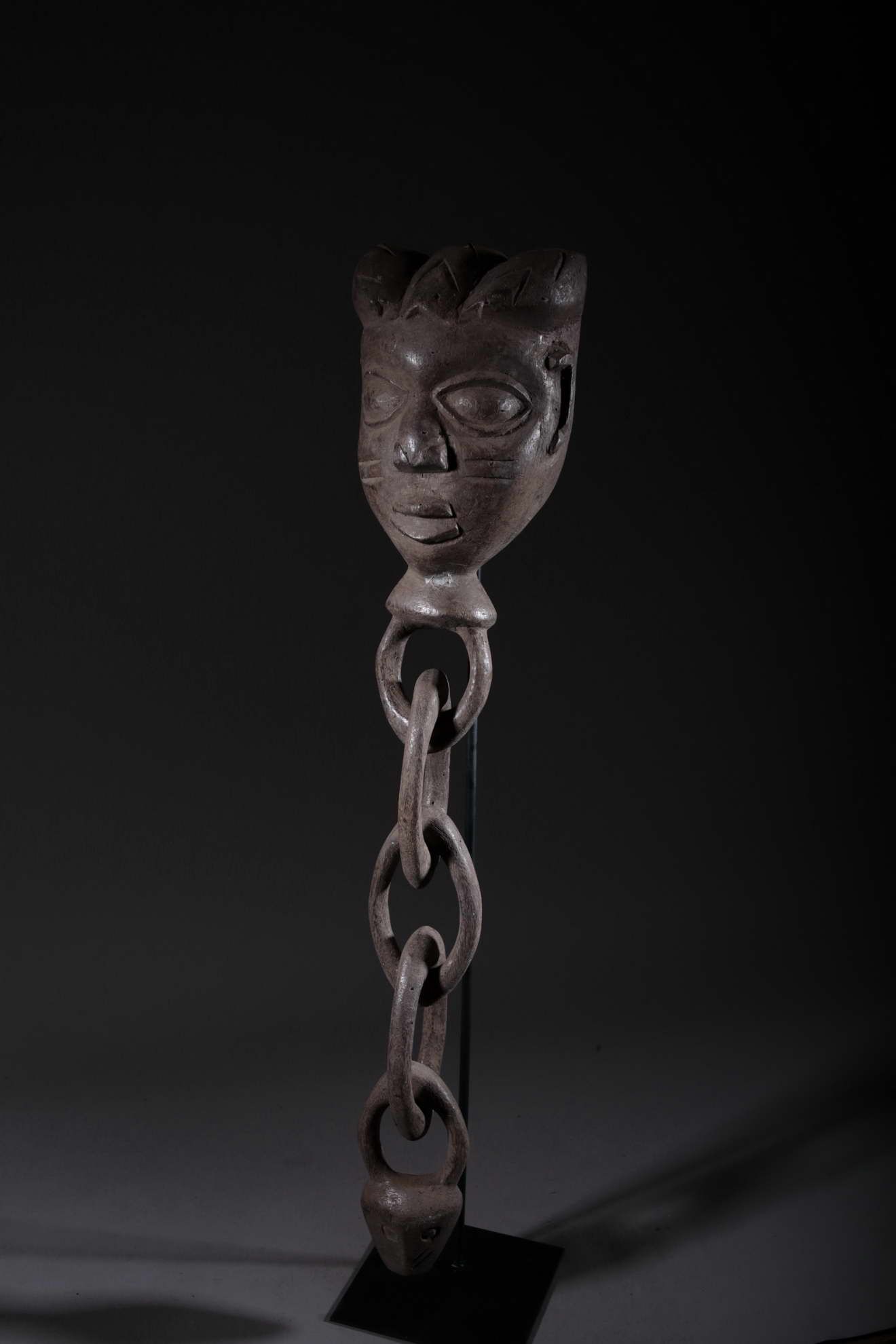Yoruba wedding chain from Nigeria. Piece over 50 years old. Piece on a stand. A ritual object used in Yoruba weddings to symbolize the mystical union of the spouses.