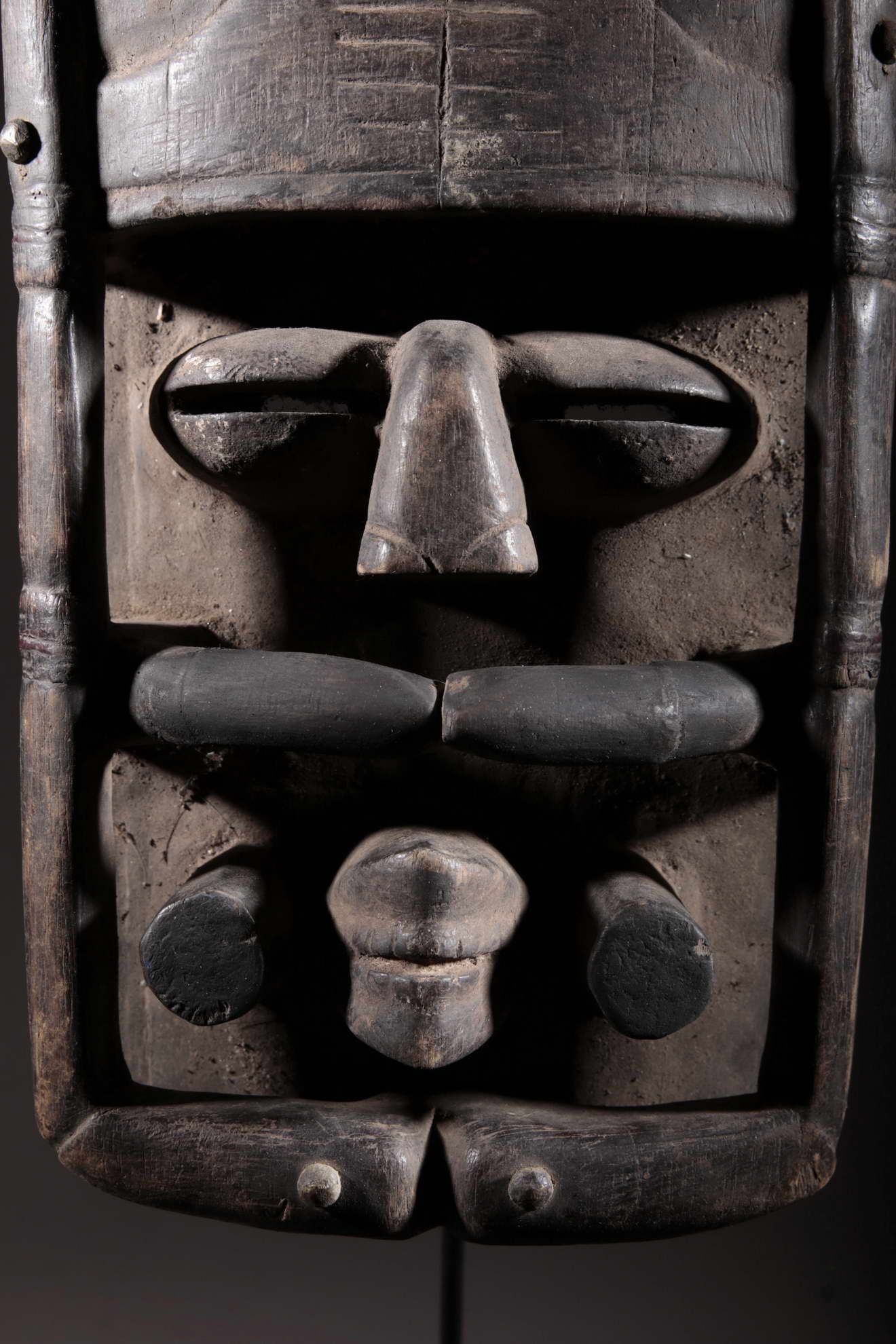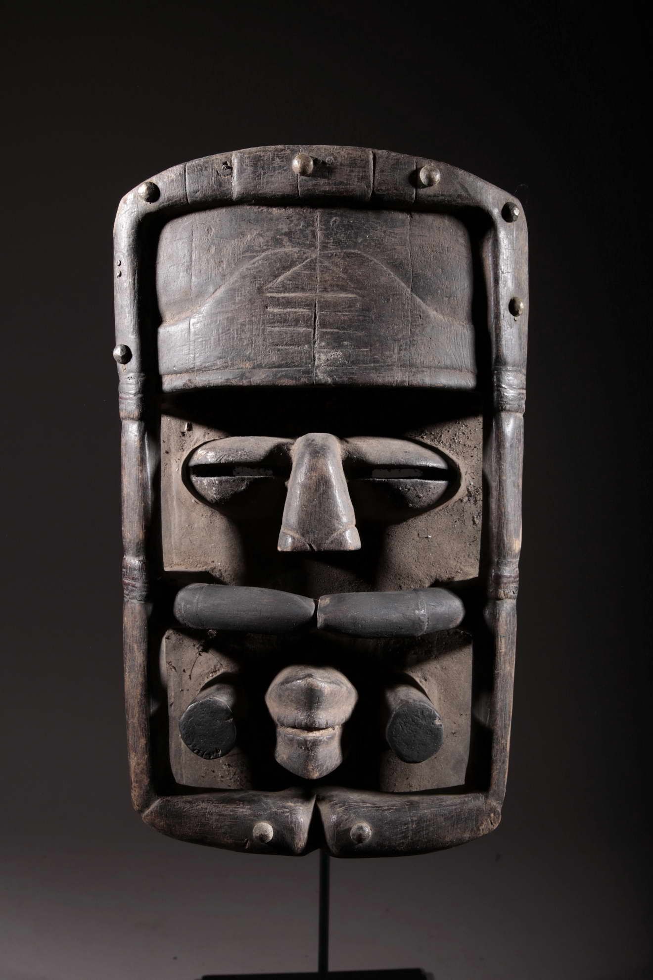 Masque Bété de Côte d'ivoire. Masque de cérémonie. Pièce originale de plus de 50 ans. Pièce sur socle.