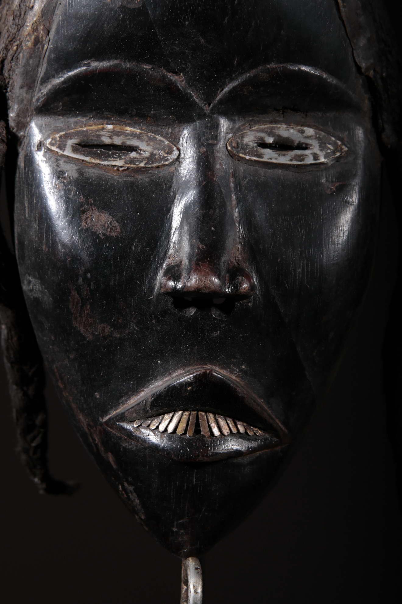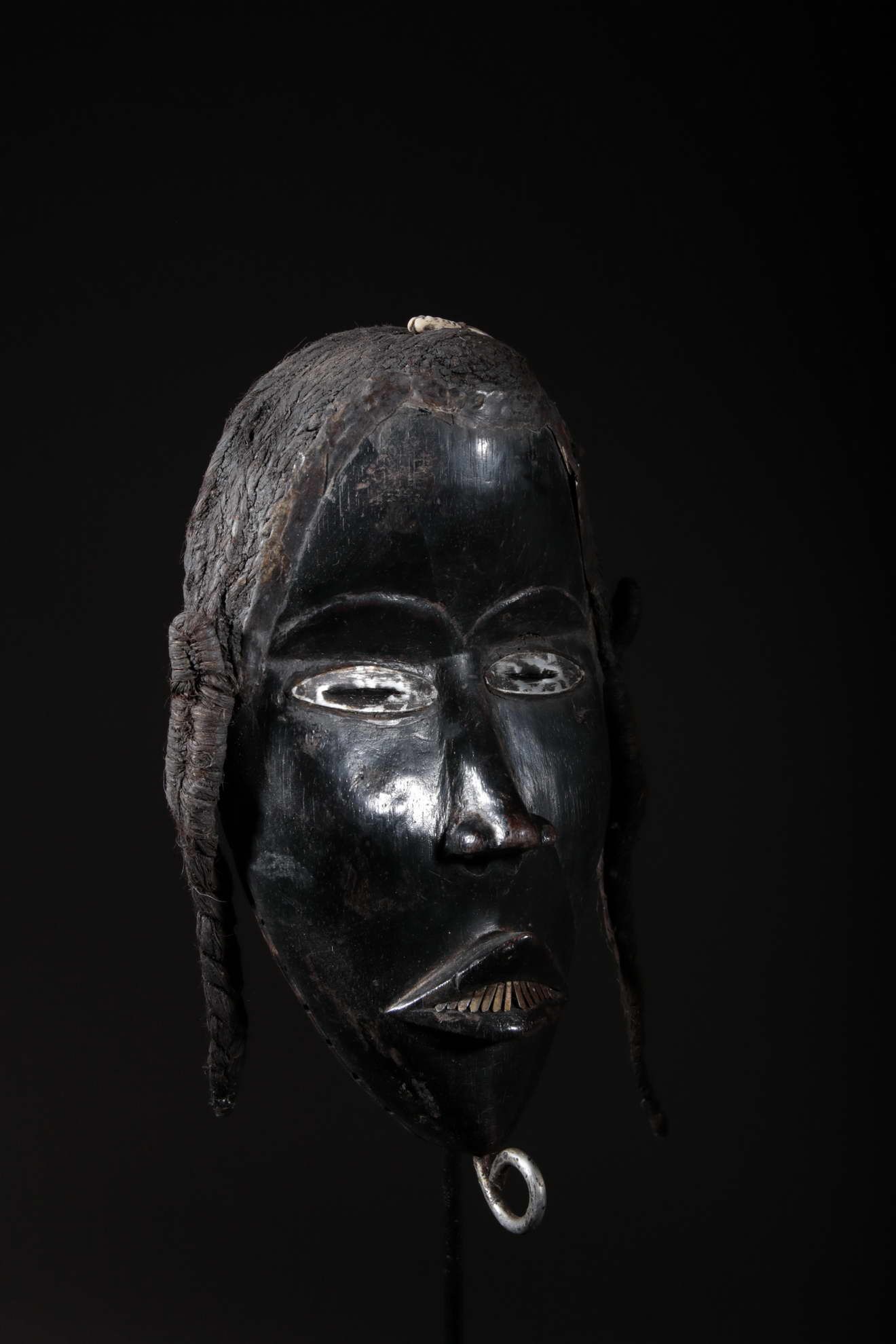Les Dan sont une sous-tribue appartenant aux Dan-Nguere. Ils habitent le Liberia orientale, la Guinée Conakry et la Côte d'Ivoire. La base sociale et spirituelle des Dan-Nguere est la société secrète Poro, qui veut dire en langue Temmé "sierra". Les masques Dan-Nguere se caractérisent autant par leurs variétés, comme par le fait qu'une même sorte de masque peut être utilisée en différentes zones pour différentes finalités. Les masques Dan féminins sont connus par l'importance qu'ils attribuent à la beauté du visage: la forme ovale, le front légèrement proéminent, les yeux déchirés, le nez fin et la bouche entrouverte. Ils rehaussent la finesse de ses lignes avec une brillante patine introduit dans le bois, en employant des substances végétales. Quand elles sèchent, elles prennent une couleur douce, qui avec l'usage ressemble à la laque. La fonction de ces masques est de régler les désaccords et de protéger les nouveaux nés. Les Dan font généralement des répliques de ces masques, qu'ils appellent "ma", pour les vénérer et comme protection contre les maladies. Ils restent cachés et servent comme preuve d'appartenance à la société Poro, se convertissant en objets presque sacrés, en les honorant avec des offrandes de riz et d'huile de palme, et de sacrifices en périodes de pleine lune. Le visage des masques Dan masculins est plus réaliste, et quelques fois avec des détails d'animaux. Il a la force vital, appelée "du", envoyée par Zlan le créateur aux hommes et aux animaux. Les "du" sont nombreux, et ils disent aux gens en rêve comment ils veulent être représentés. Quelques fois, ils veulent qu'un fétiche, ou qu'un arbre soit planté, mais ils peuvent demander aussi un masque pour résider. Alors, l'esprit se matérialise et se transforme en un "gle", et il peut intervenir directement dans la vie de la communauté. Chaque "gle" a sa fonction, et préside les differents événements sociaux. Ils sont aussi présents dans les moments de danger, ou de distraction. C'est pour ça qu'il y a une grande variété de masques Dan.