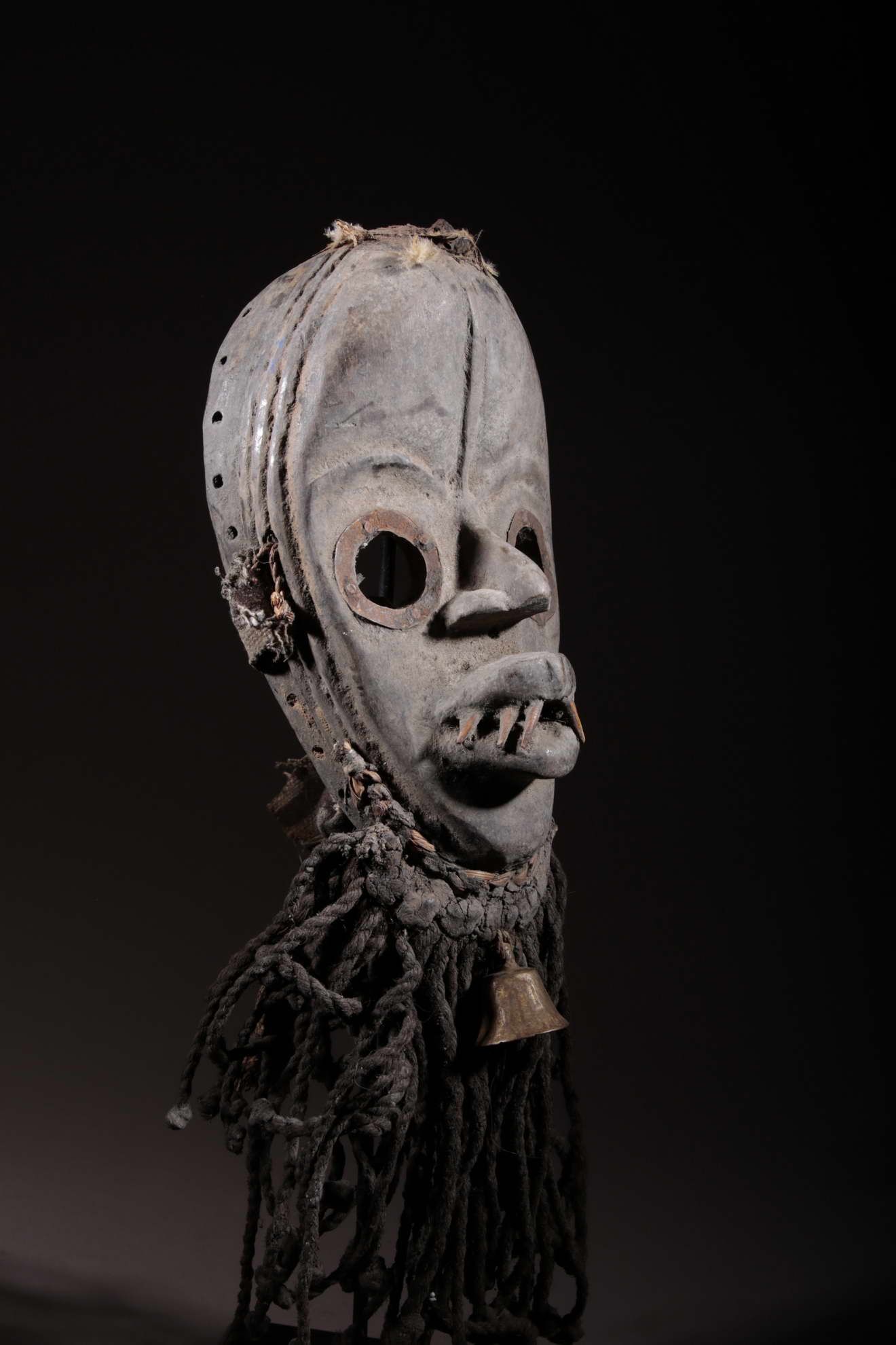 Les Dan sont une sous-tribue appartenant aux Dan-Nguere. Ils habitent le Liberia orientale, la Guinée Conakry et la Côte d'Ivoire. La base sociale et spirituelle des Dan-Nguere est la société secrète Poro, qui veut dire en langue Temmé "sierra". Les masques Dan-Nguere se caractérisent autant par leurs variétés, comme par le fait qu'une même sorte de masque peut être utilisée en différentes zones pour différentes finalités. Les masques Dan féminins sont connus par l'importance qu'ils attribuent à la beauté du visage: la forme ovale, le front légèrement proéminent, les yeux déchirés, le nez fin et la bouche entrouverte. Ils rehaussent la finesse de ses lignes avec une brillante patine introduit dans le bois, en employant des substances végétales. Quand elles sèchent, elles prennent une couleur douce, qui avec l'usage ressemble à la laque. La fonction de ces masques est de régler les désaccords et de protéger les nouveaux nés. Les Dan font généralement des répliques de ces masques, qu'ils appellent "ma", pour les vénérer et comme protection contre les maladies. Ils restent cachés et servent comme preuve d'appartenance à la société Poro, se convertissant en objets presque sacrés, en les honorant avec des offrandes de riz et d'huile de palme, et de sacrifices en périodes de pleine lune. Le visage des masques Dan masculins est plus réaliste, et quelques fois avec des détails d'animaux. Il a la force vital, appelée "du", envoyée par Zlan le créateur aux hommes et aux animaux. Les "du" sont nombreux, et ils disent aux gens en rêve comment ils veulent être représentés. Quelques fois, ils veulent qu'un fétiche, ou qu'un arbre soit planté, mais ils peuvent demander aussi un masque pour résider. Alors, l'esprit se matérialise et se transforme en un "gle", et il peut intervenir directement dans la vie de la communauté. Chaque "gle" a sa fonction, et préside les differents événements sociaux. Ils sont aussi présents dans les moments de danger, ou de distraction. C'est pour ça qu'il y a une grande variété de masques Dan.
