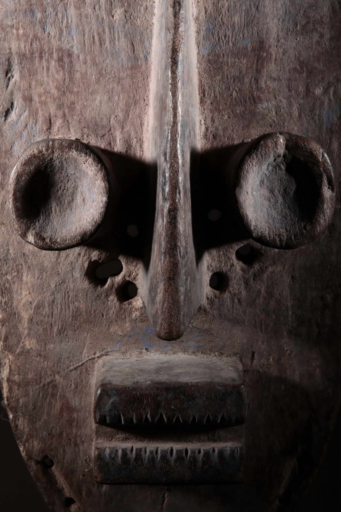 Les masques masculins aux formes géométriques sont souvent reconnaissables à leur long nez encadré par une, deux ou plusieurs paires d'yeux protubérants de forme tubulaire, d'allure parfois menaçante. Les traits des masques féminins sont plus doux, plus harmonieux et plus sereins.