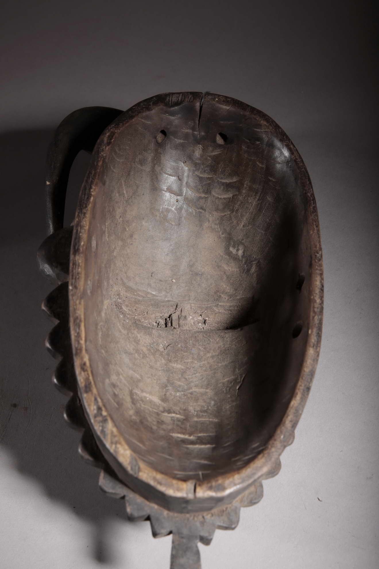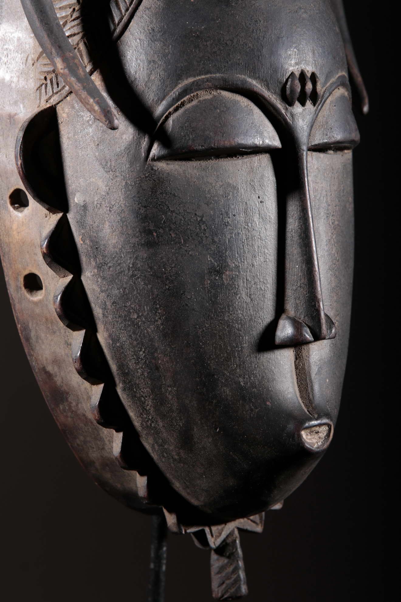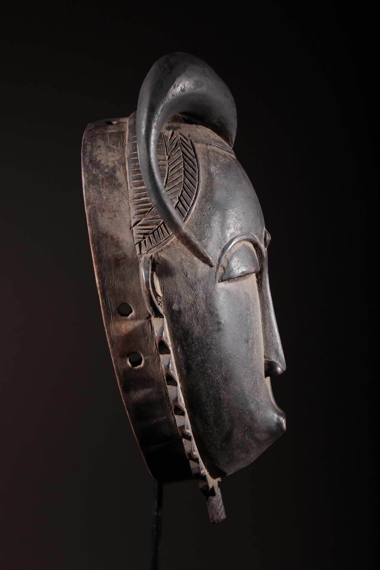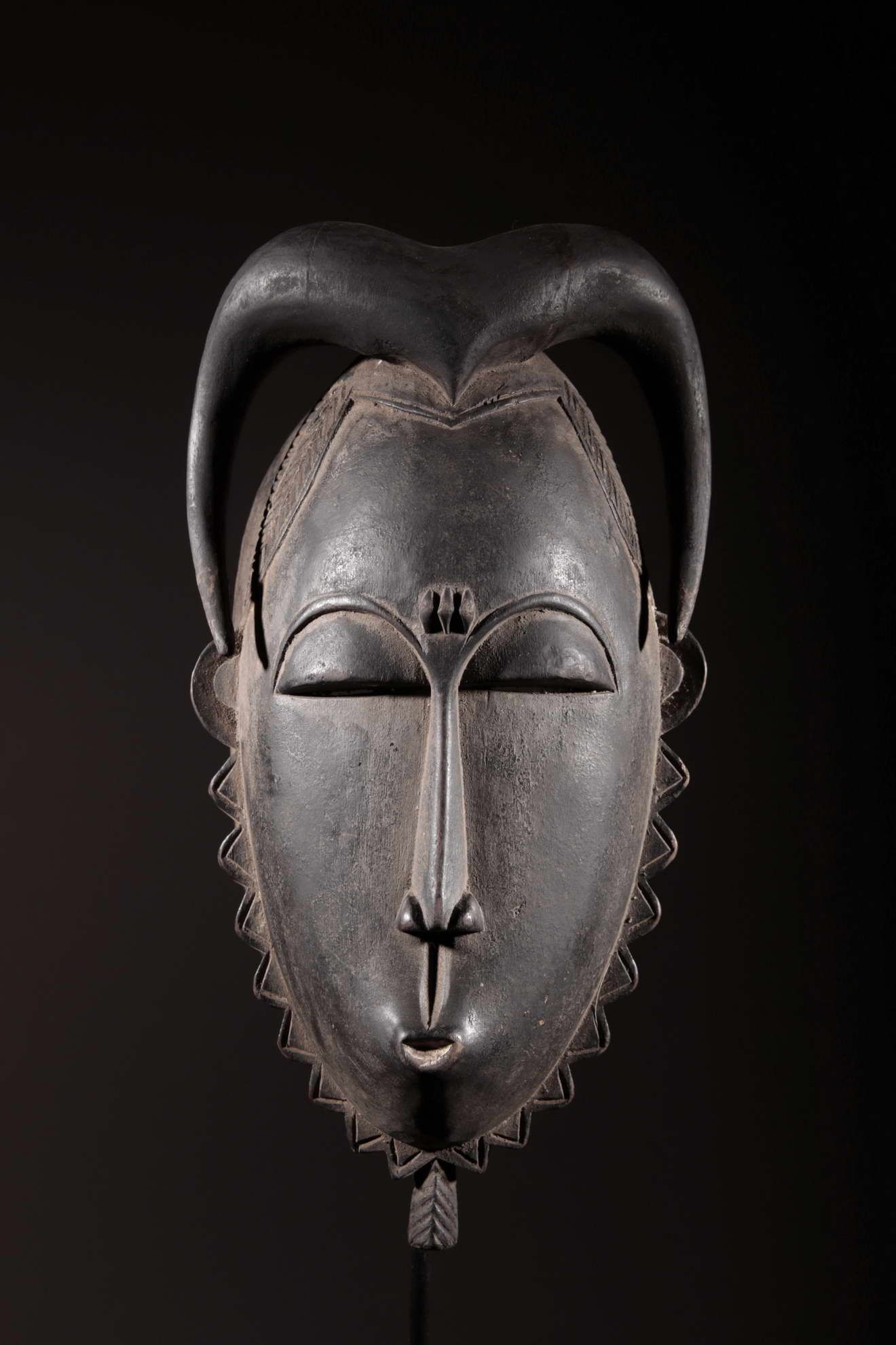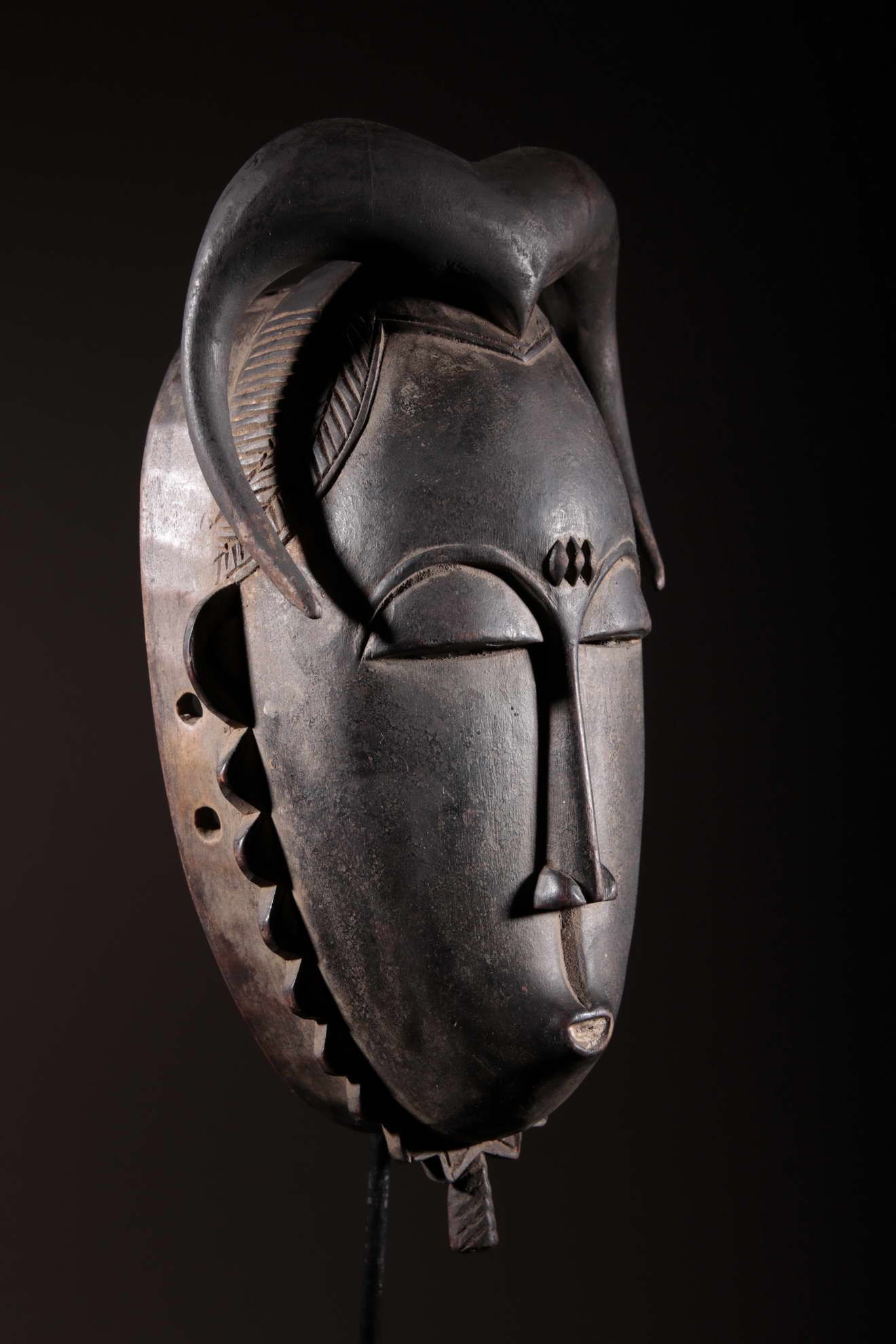 Les Yaouré sont divisés en trois groupes principaux rassemblant chacun une vingtaine de villages. Chaque village est dirigé par un chef, assisté par un conseil des anciens. La langue, la religion, la culture et l'art yaouré sont influencés par leurs puissants voisins les Baoulé et les Gouro. Cependant, ils possèdent un grand sens identitaire et ont créé un art caractéristique et rafiné.Chez les Yohouré ou Yaouré, les masques africains servent à influencer les forces surnaturelles 'YU' responsables des maux des hommes mais aussi de leur prospérité. Les masques dans cette ethnie sont interdits aux femmes, ils sont dansés le plus souvent pour rétablir le déséquilibre social et politique que peut entrainer le décès. Les Yohourés ont influencé les Baoulés en ce qui concerne l'esthétique des masques et ont été eux-mêmes influencés par le style Gouro. Sur ce masque le nez et la chevelure rappellent les masques Gu des Gouro. La chevelure est disposée en trois demi-cercles très travaillés : cela est le signe chez les Yohouré de pouvoir et de richesse*. Les masques de cette ethnie dégagent une sérénité, une douceur qui sont dûs à des conditions de vie relativement clémentes (climat et agriculture favorisés par la région lagunaire boisée qu'ils occupent). Les masques Yohouré sont souvent entourés d'une bordure dentelée caractéristique qui structure le masque et souligne l'harmonie générale des formes.