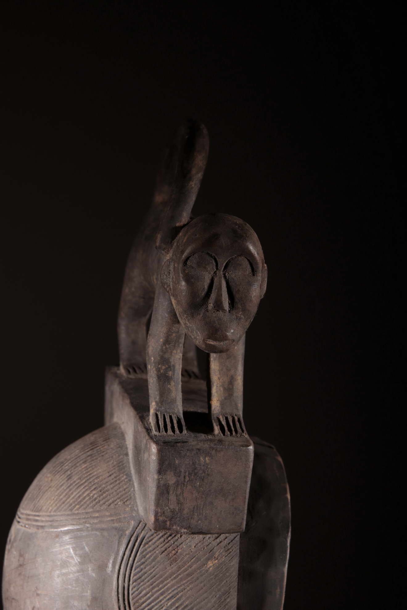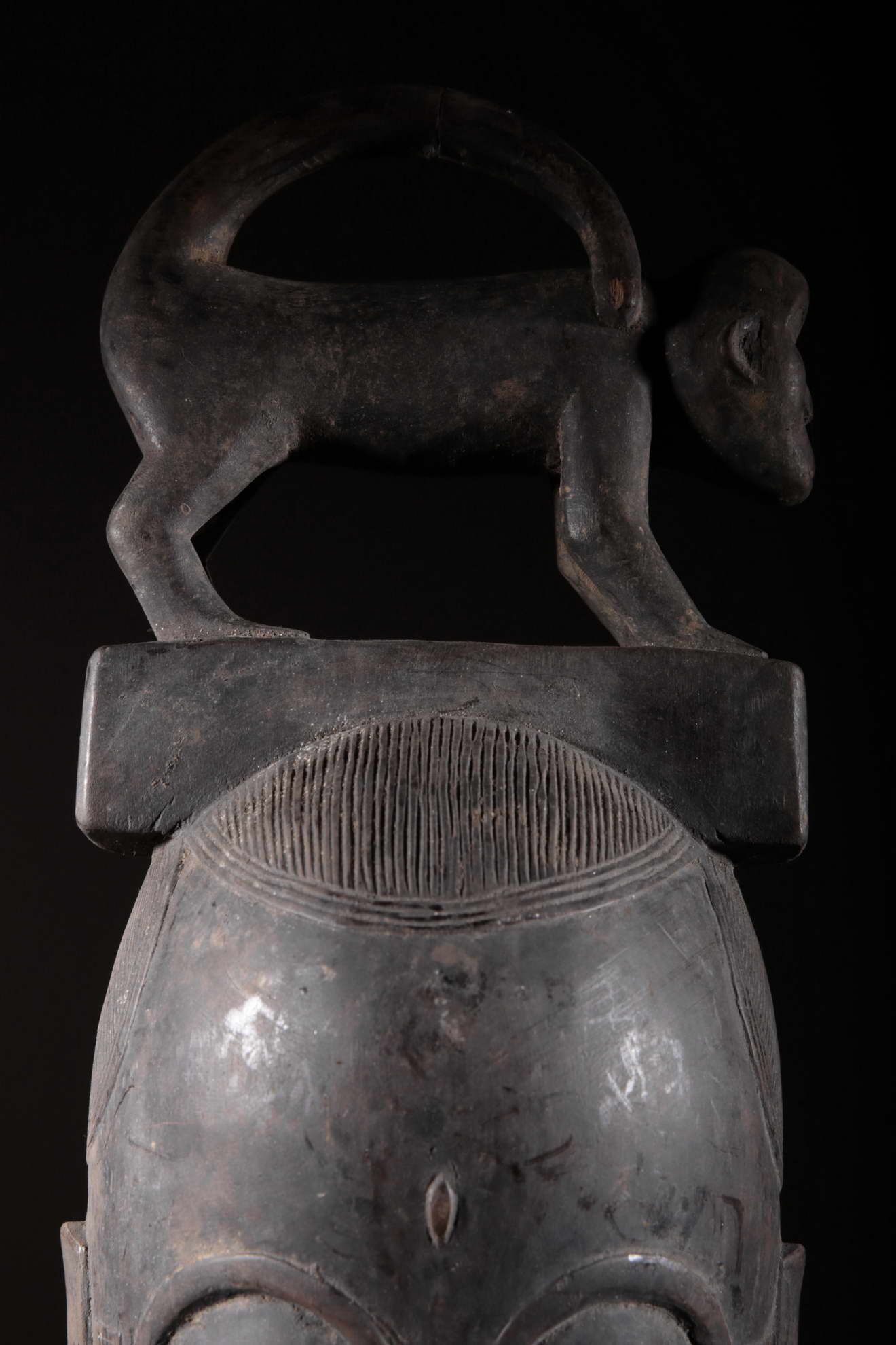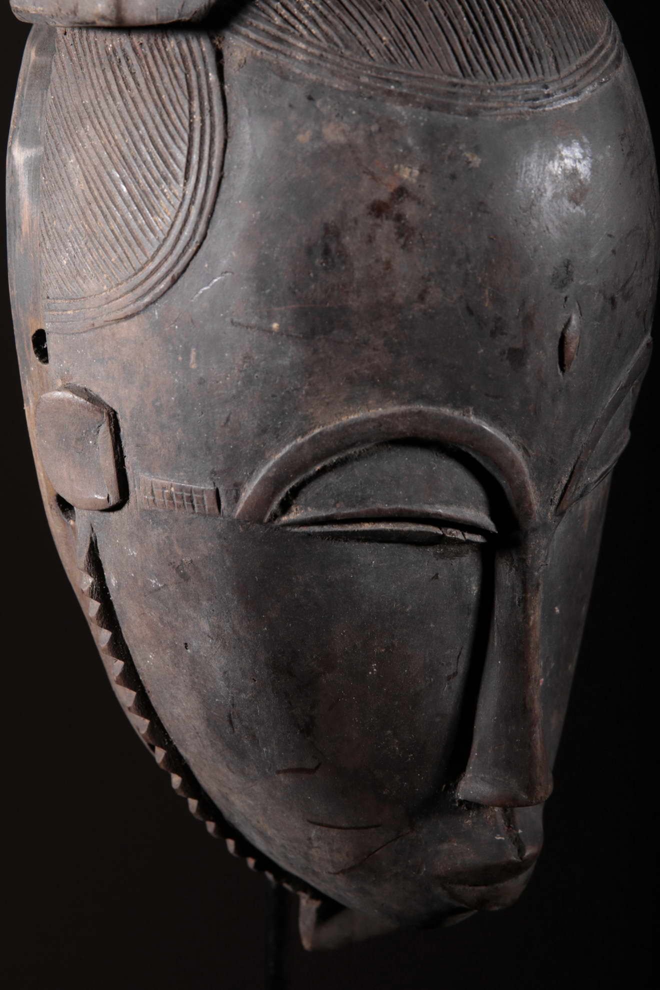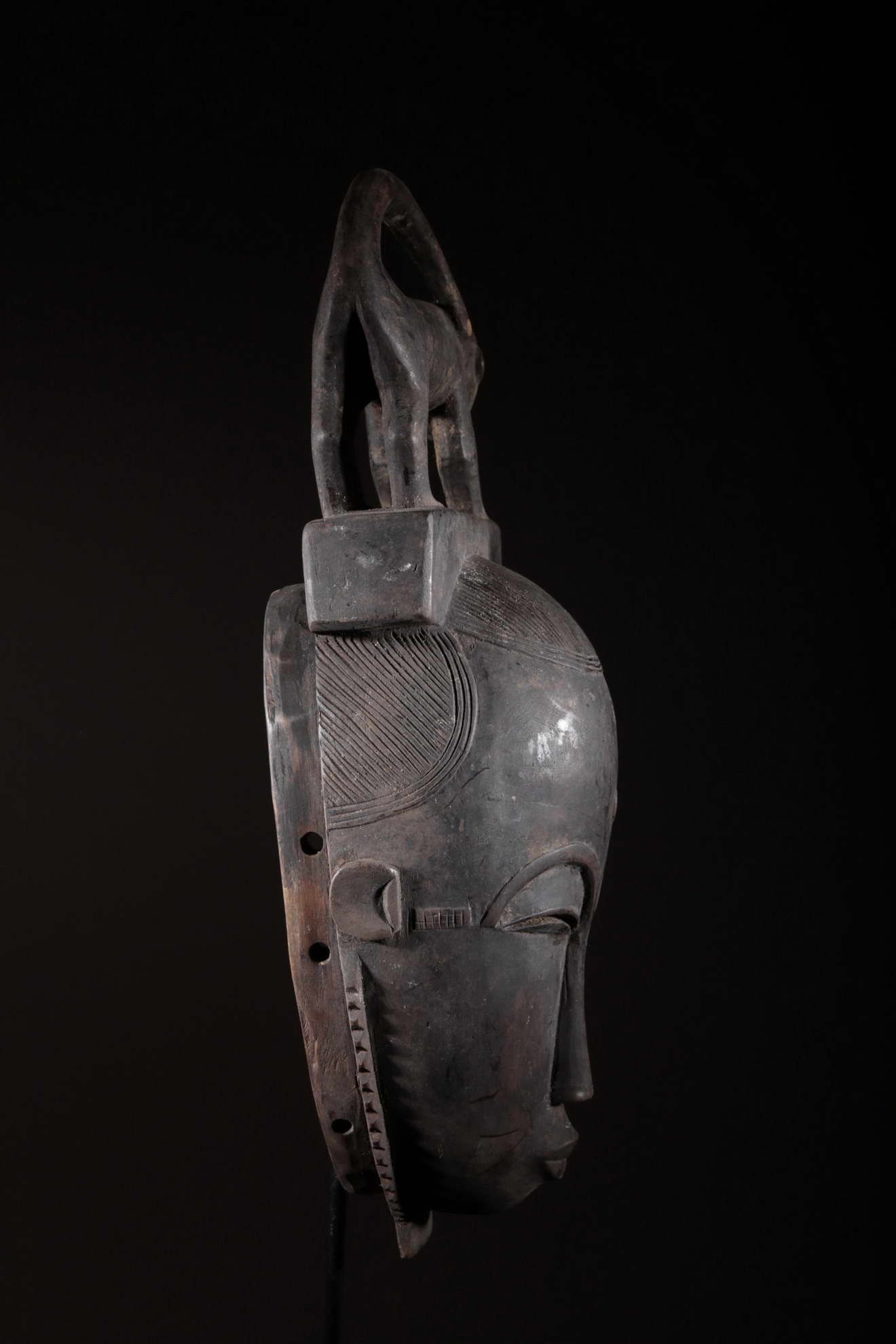 Les Yaouré sont divisés en trois groupes principaux rassemblant chacun une vingtaine de villages. Chaque village est dirigé par un chef, assisté par un conseil des anciens. La langue, la religion, la culture et l'art yaouré sont influencés par leurs puissants voisins les Baoulé et les Gouro. Cependant, ils possèdent un grand sens identitaire et ont créé un art caractéristique et rafiné.Chez les Yohouré ou Yaouré, les masques africains servent à influencer les forces surnaturelles 'YU' responsables des maux des hommes mais aussi de leur prospérité. Les masques dans cette ethnie sont interdits aux femmes, ils sont dansés le plus souvent pour rétablir le déséquilibre social et politique que peut entrainer le décès. Les Yohourés ont influencé les Baoulés en ce qui concerne l'esthétique des masques et ont été eux-mêmes influencés par le style Gouro. Sur ce masque le nez et la chevelure rappellent les masques Gu des Gouro. La chevelure est disposée en trois demi-cercles très travaillés : cela est le signe chez les Yohouré de pouvoir et de richesse*. Les masques de cette ethnie dégagent une sérénité, une douceur qui sont dûs à des conditions de vie relativement clémentes (climat et agriculture favorisés par la région lagunaire boisée qu'ils occupent). Les masques Yohouré sont souvent entourés d'une bordure dentelée caractéristique qui structure le masque et souligne l'harmonie générale des formes.