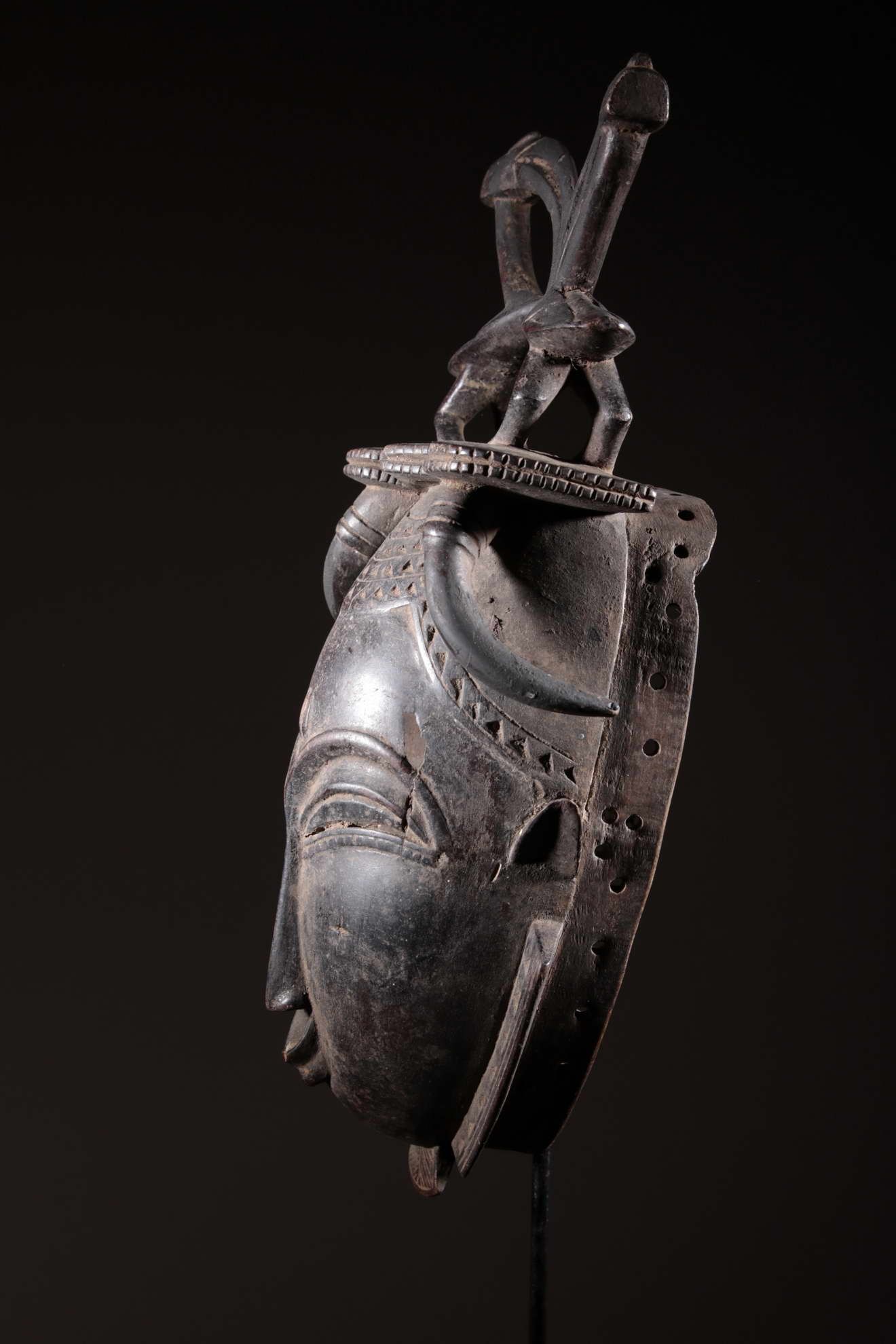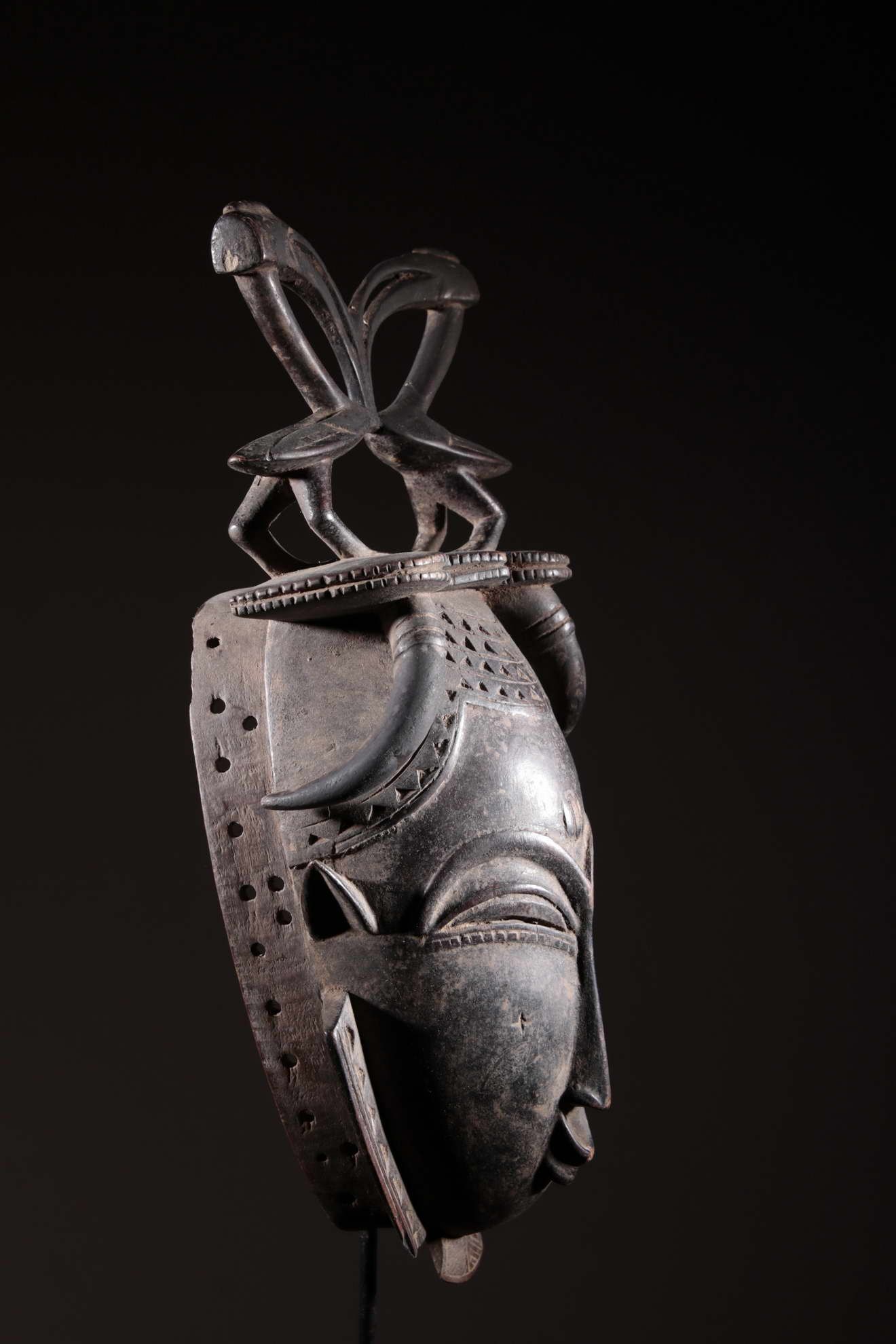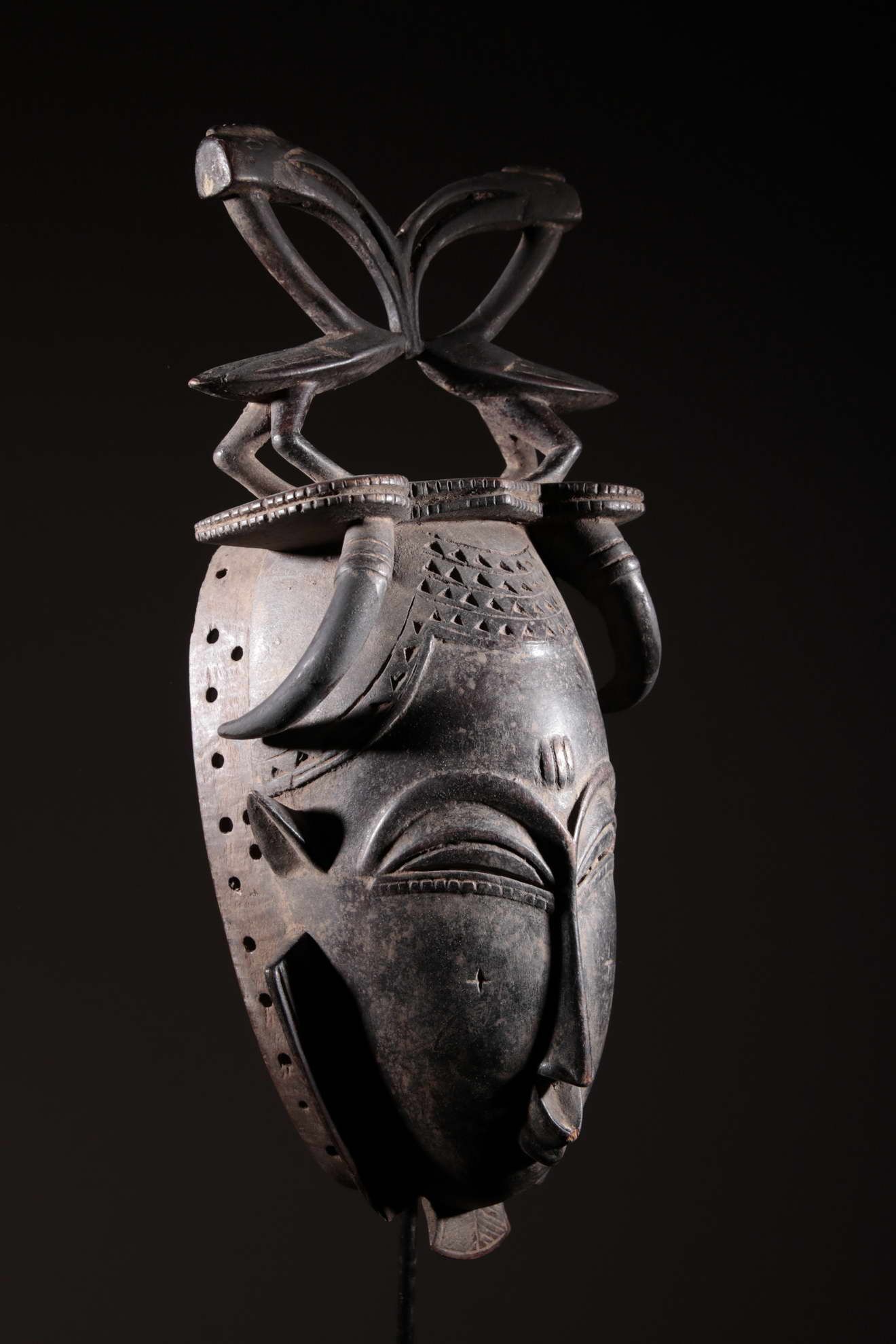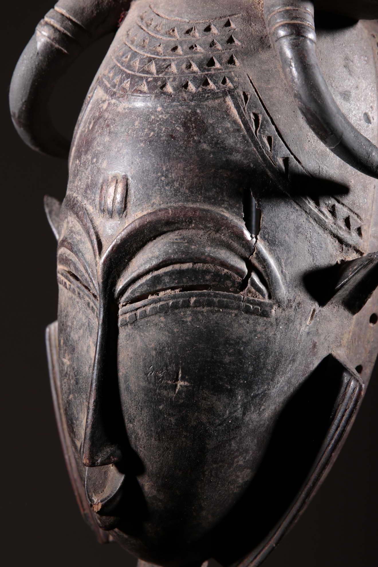 Les Yaouré sont divisés en trois groupes principaux rassemblant chacun une vingtaine de villages. Chaque village est dirigé par un chef, assisté par un conseil des anciens. La langue, la religion, la culture et l'art yaouré sont influencés par leurs puissants voisins les Baoulé et les Gouro. Cependant, ils possèdent un grand sens identitaire et ont créé un art caractéristique et rafiné.Chez les Yohouré ou Yaouré, les masques africains servent à influencer les forces surnaturelles 'YU' responsables des maux des hommes mais aussi de leur prospérité. Les masques dans cette ethnie sont interdits aux femmes, ils sont dansés le plus souvent pour rétablir le déséquilibre social et politique que peut entrainer le décès. Les Yohourés ont influencé les Baoulés en ce qui concerne l'esthétique des masques et ont été eux-mêmes influencés par le style Gouro. Sur ce masque le nez et la chevelure rappellent les masques Gu des Gouro. La chevelure est disposée en trois demi-cercles très travaillés : cela est le signe chez les Yohouré de pouvoir et de richesse*. Les masques de cette ethnie dégagent une sérénité, une douceur qui sont dûs à des conditions de vie relativement clémentes (climat et agriculture favorisés par la région lagunaire boisée qu'ils occupent). Les masques Yohouré sont souvent entourés d'une bordure dentelée caractéristique qui structure le masque et souligne l'harmonie générale des formes.