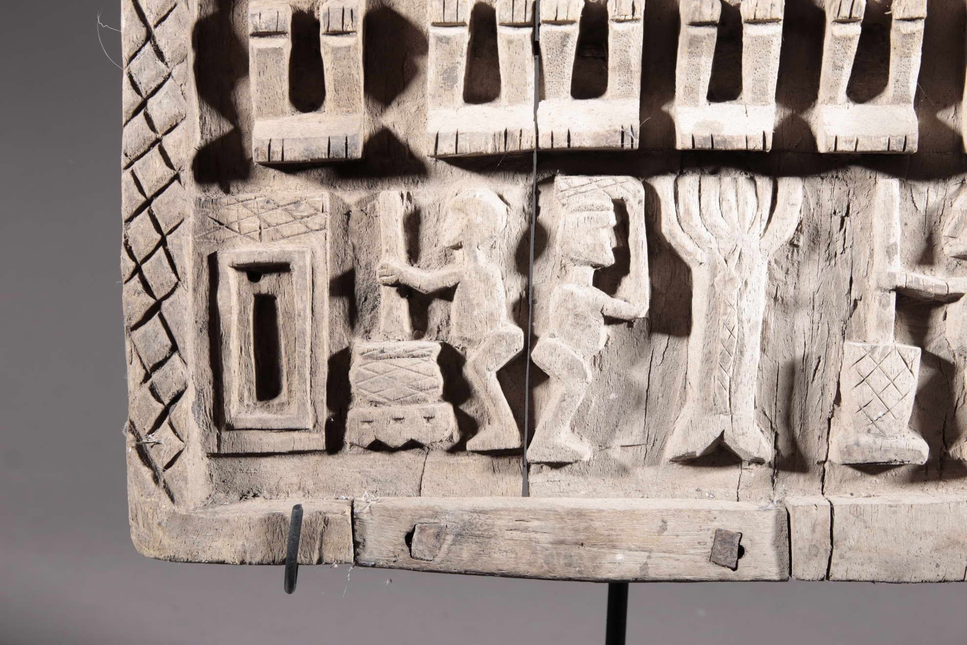 Volet de grenier Dogon du Mali. Pièce ancienne, de plus 50 ans. Pièce sur socle.