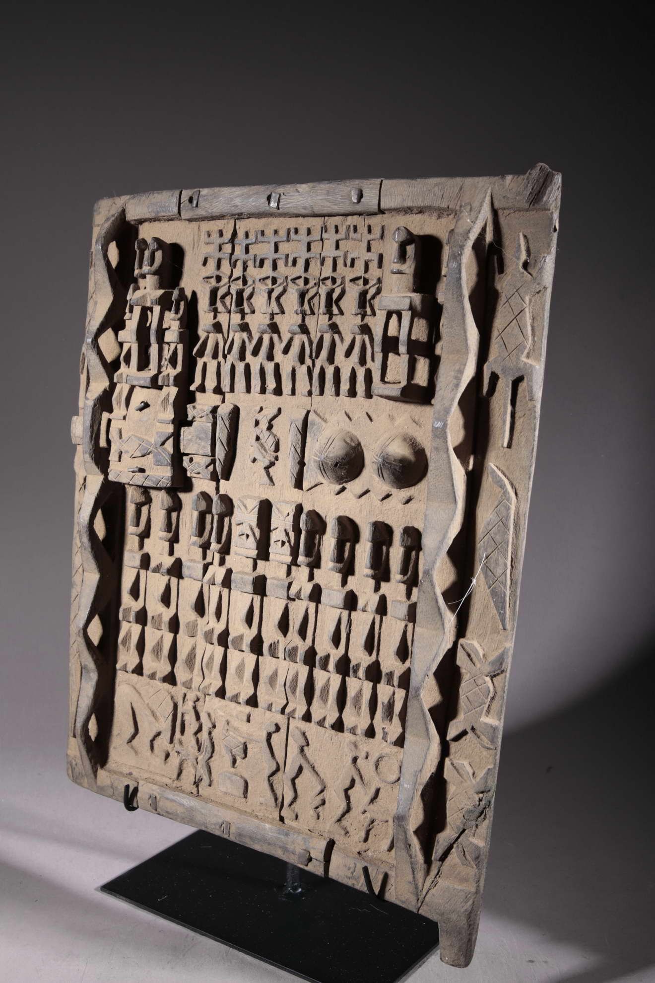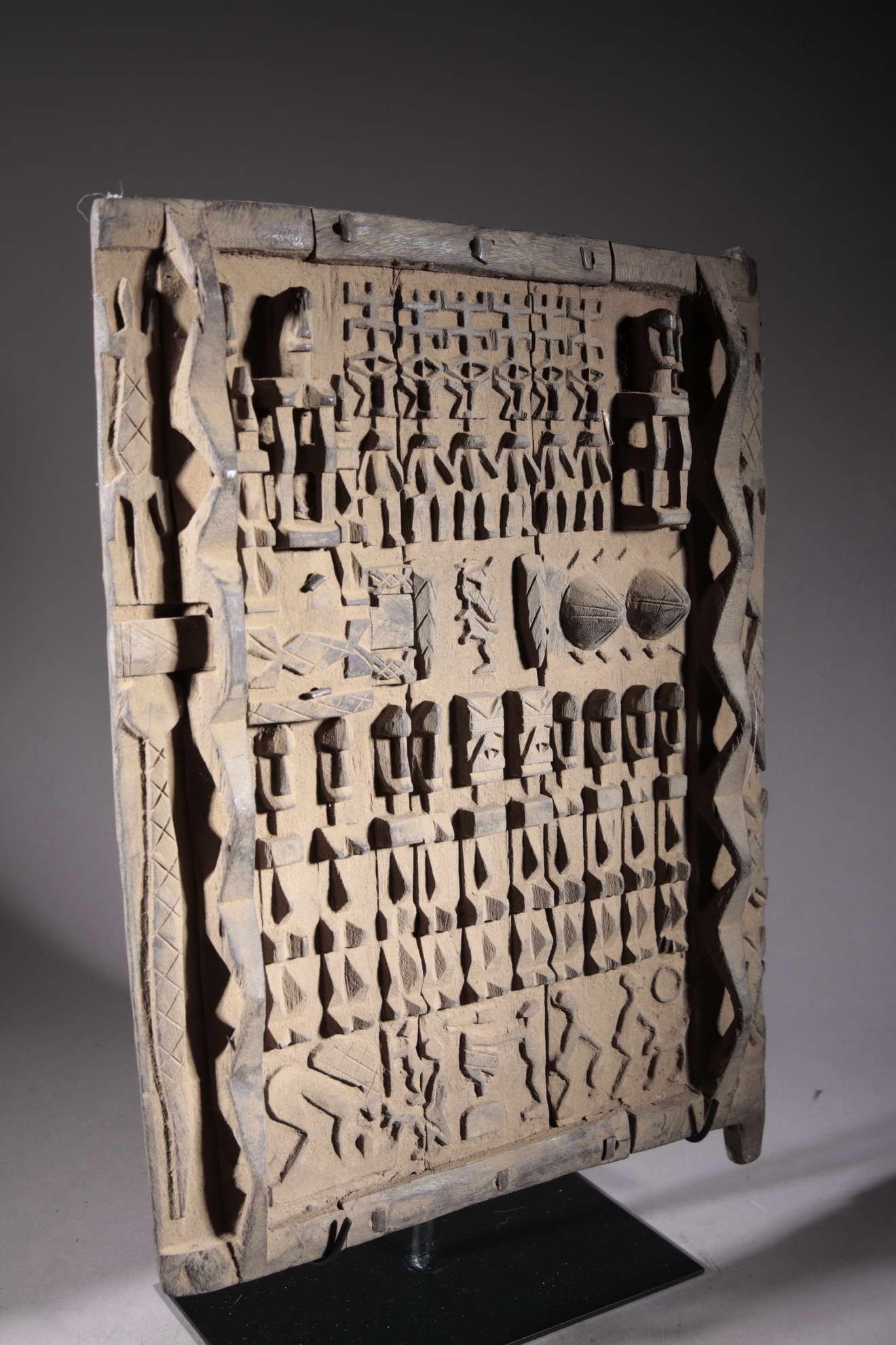 Volet de grenier Dogon du Mali. Pièce ancienne, de plus 50 ans. Pièce sur socle.